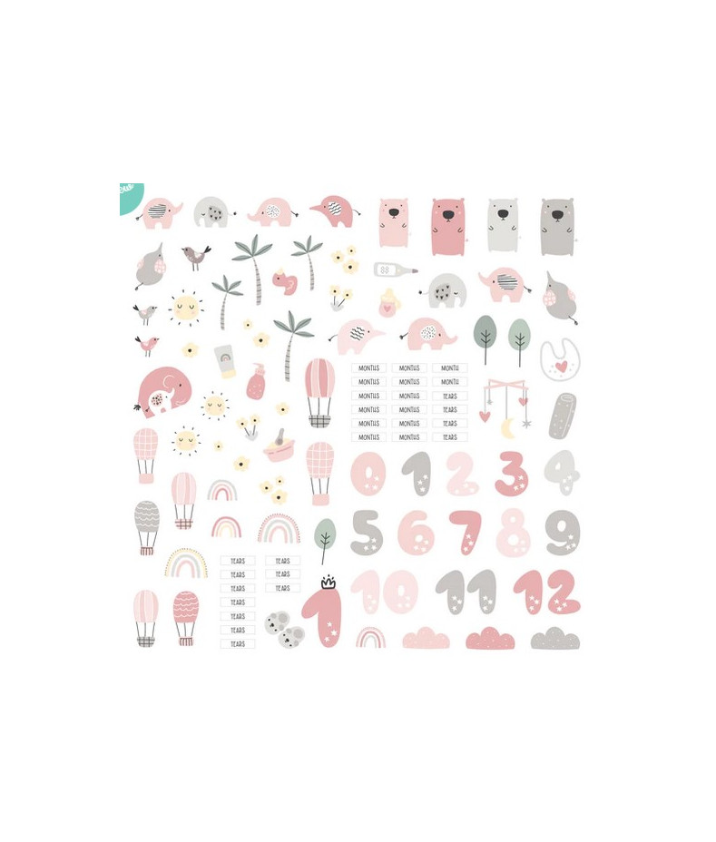 La confezione include 104 die cuts coordinati alla collezione Hello Sweet Boy paper pack ModaScrap.