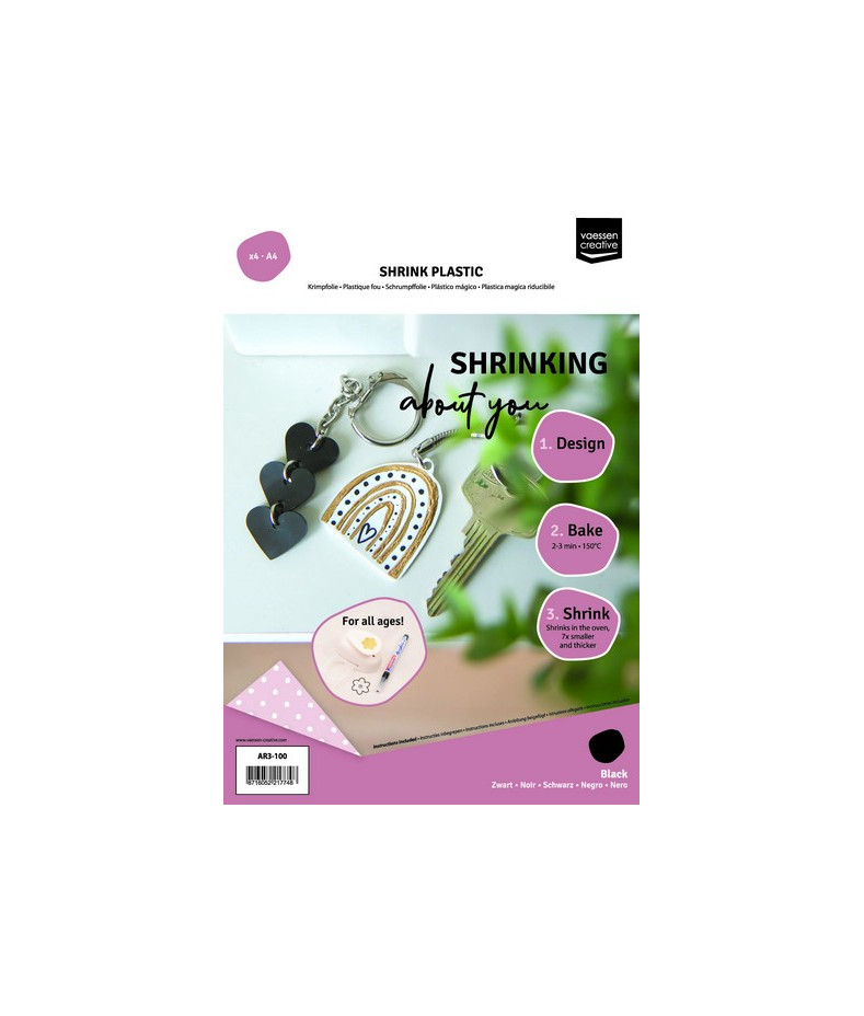 Confezione di 4 fogli da mm. 203x267 di PolyShrinkar Nero