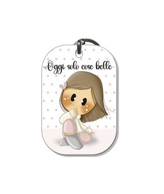Portachiavi in acrilico con anello in metallo.